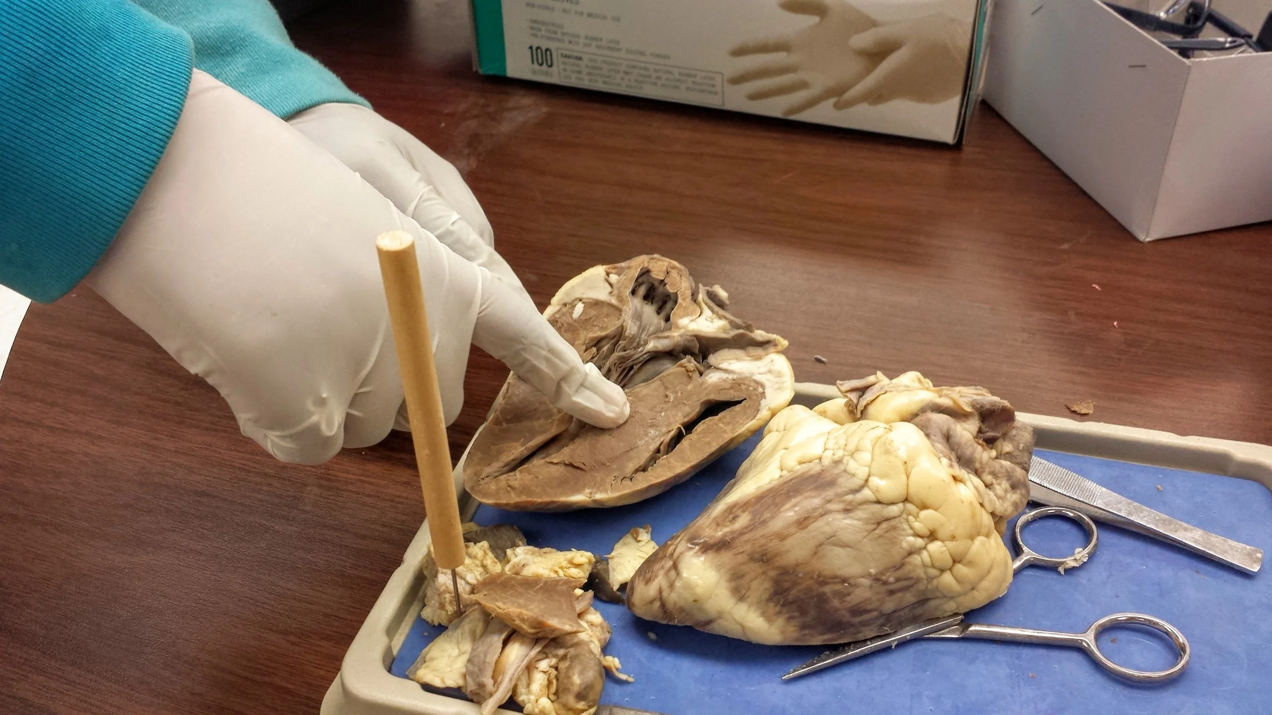 The photo on the right was part of my biology class when we learned about the circulatory system. We got a few cow hearts so that we could turn reading about ventricles to flexing the muscles directly!